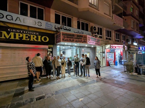 We caught the ferry back to Algeciras, seeing the beautiful views on the ride. When we arrived, we checked into our hotel and had some delicious food for lunch (shawarma!). After this came the all important task of doing our laundry, taking up a lot of space in the laundromats around the city. It felt good to come back to a place that was somewhat familiar to us, and participate in "normal life" there, doing simple things that others in the city were also doing. We met at the Magic Flute for supper, a Moroccan restaurant close to the port. It was delicious food, and we had good times of laughter together. We had a chill end to the day, with some prayer, as well as some final preparations for camp.